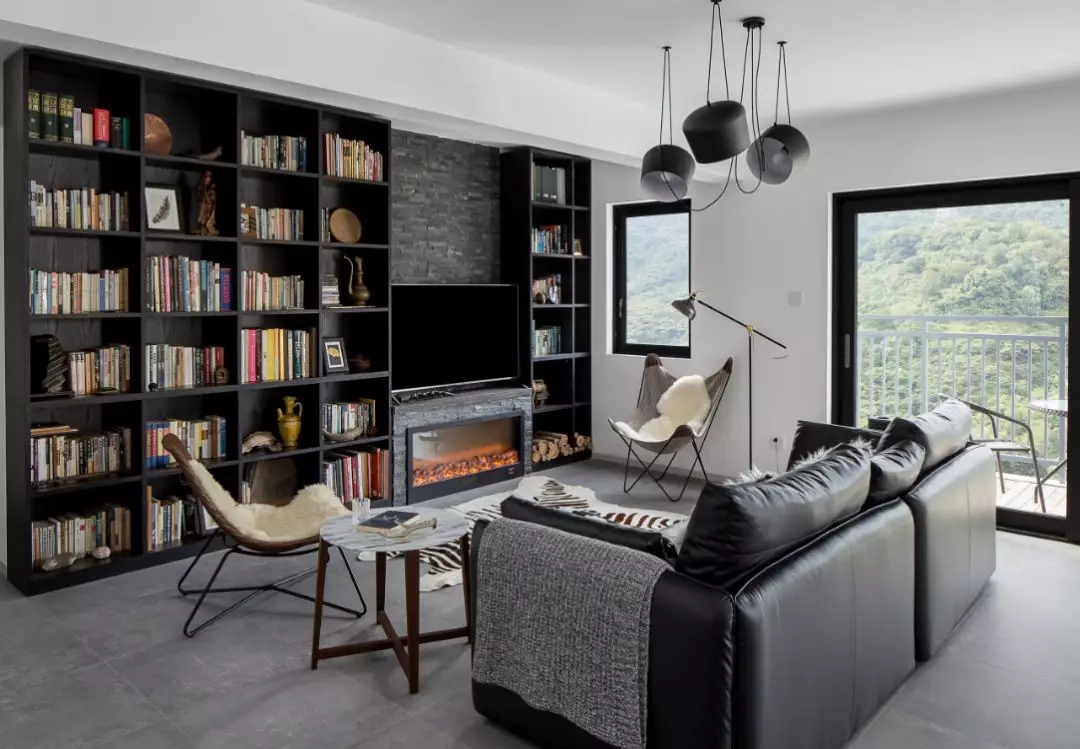 高級灰作為次臥的主調,電子壁爐的新穎床頭柜,滿足功能性同時,營造有溫度、有人情味、有藝術性的生活情境。