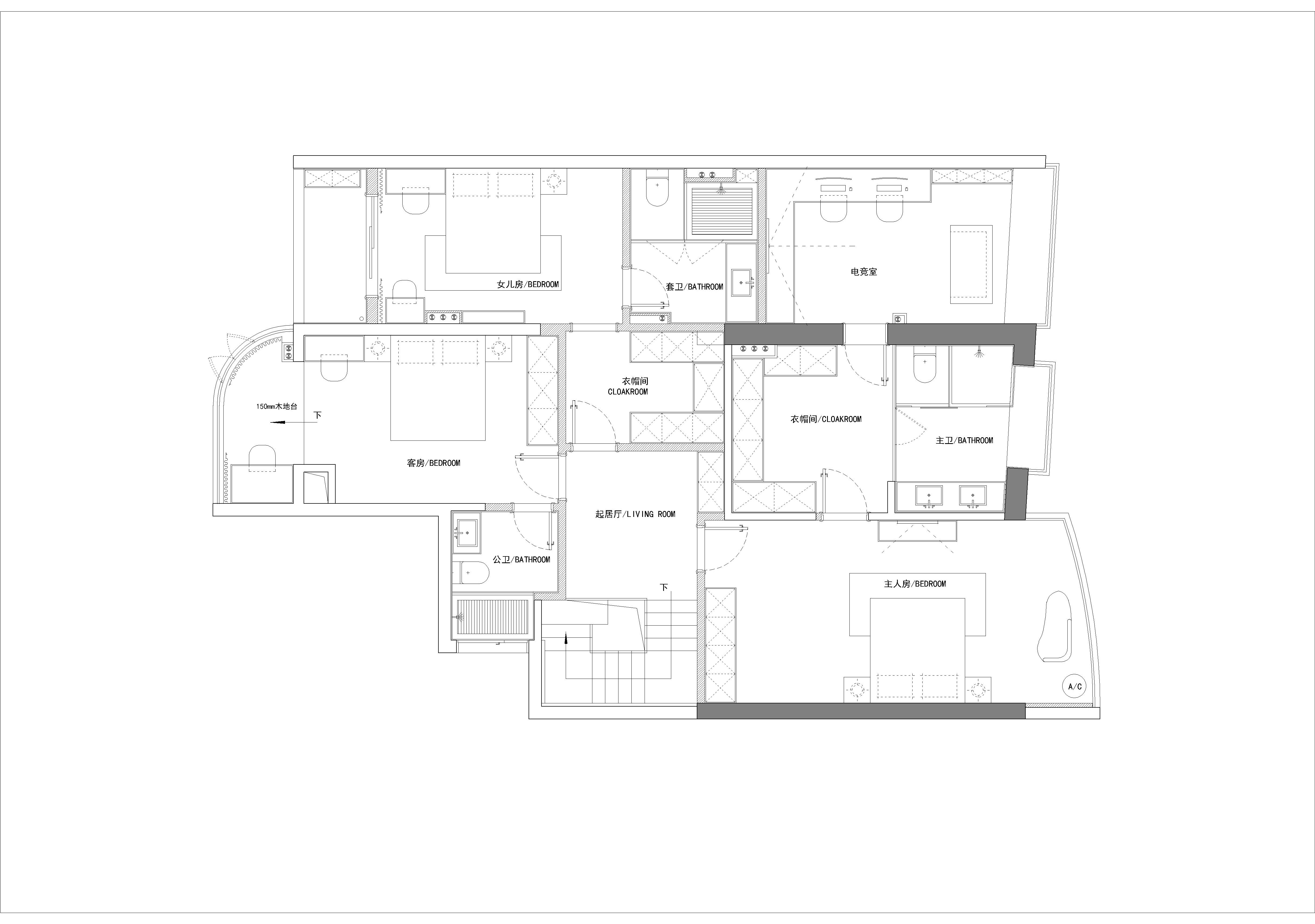 本案坐落于廣州珠江岸邊,視野開拓,清風徐徐,站在一覽無余的落地玻璃窗邊,讓人有一種一覽眾山小的感受,色調上的遞進感把空間的層次一步步推向縱深,讓空間處處有形且融于整體,色調和且不張揚,給現在的年輕人一種避世的歸屬感,找到屬于自己獨立且靜謐的空間。