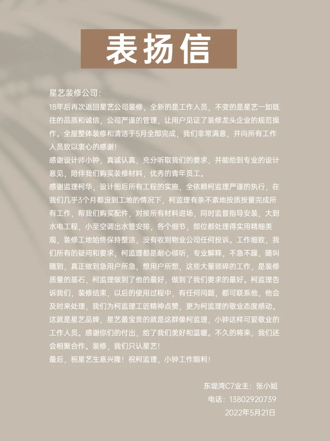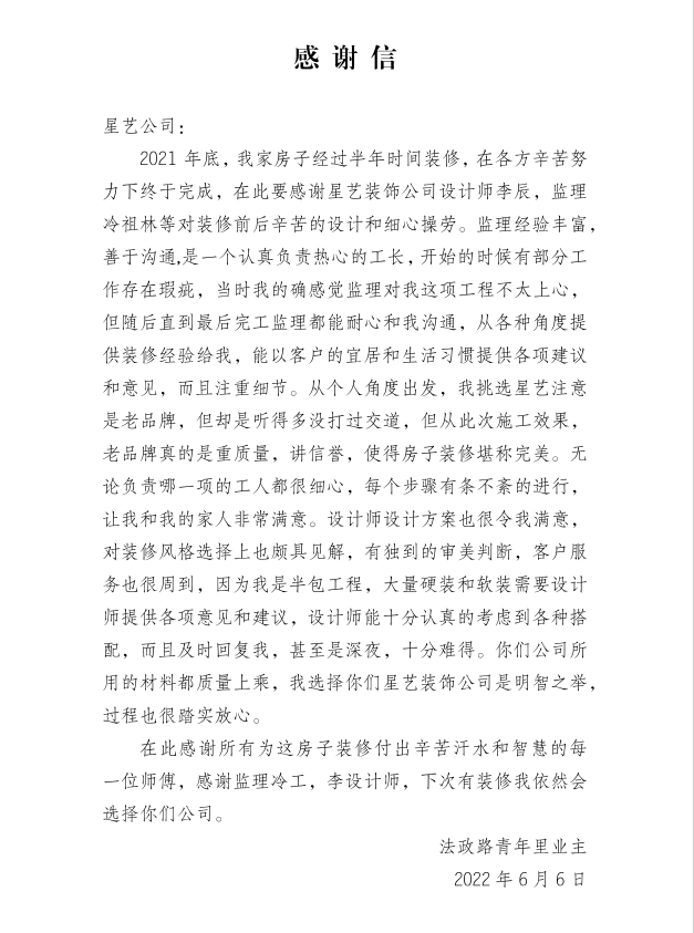 客戶(hù)贊許|一封封來(lái)信帶來(lái)最誠(chéng)摯的謝意:“裝修,我們只認(rèn)星藝”!