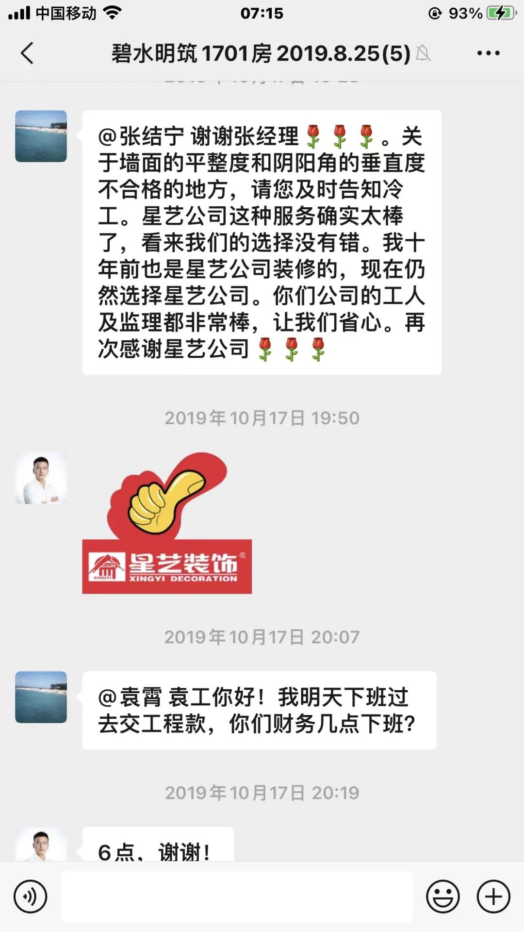 不管時(shí)隔多久,星藝的品質(zhì)和誠(chéng)信都不會(huì)變,耐心傾聽(tīng),規(guī)范專(zhuān)業(yè),隨叫隨到,一如既往致力于給每位業(yè)主筑造美好小家。