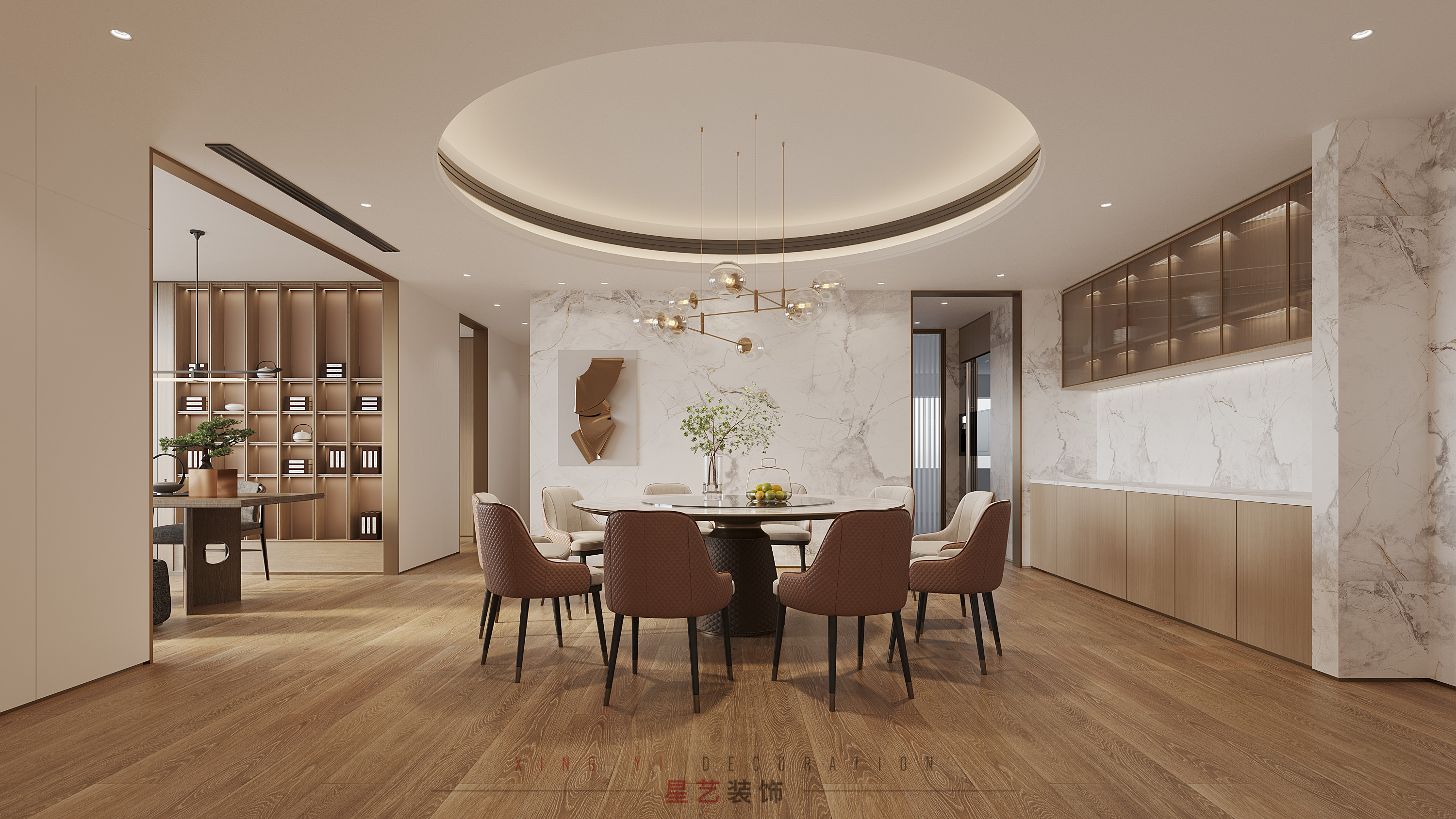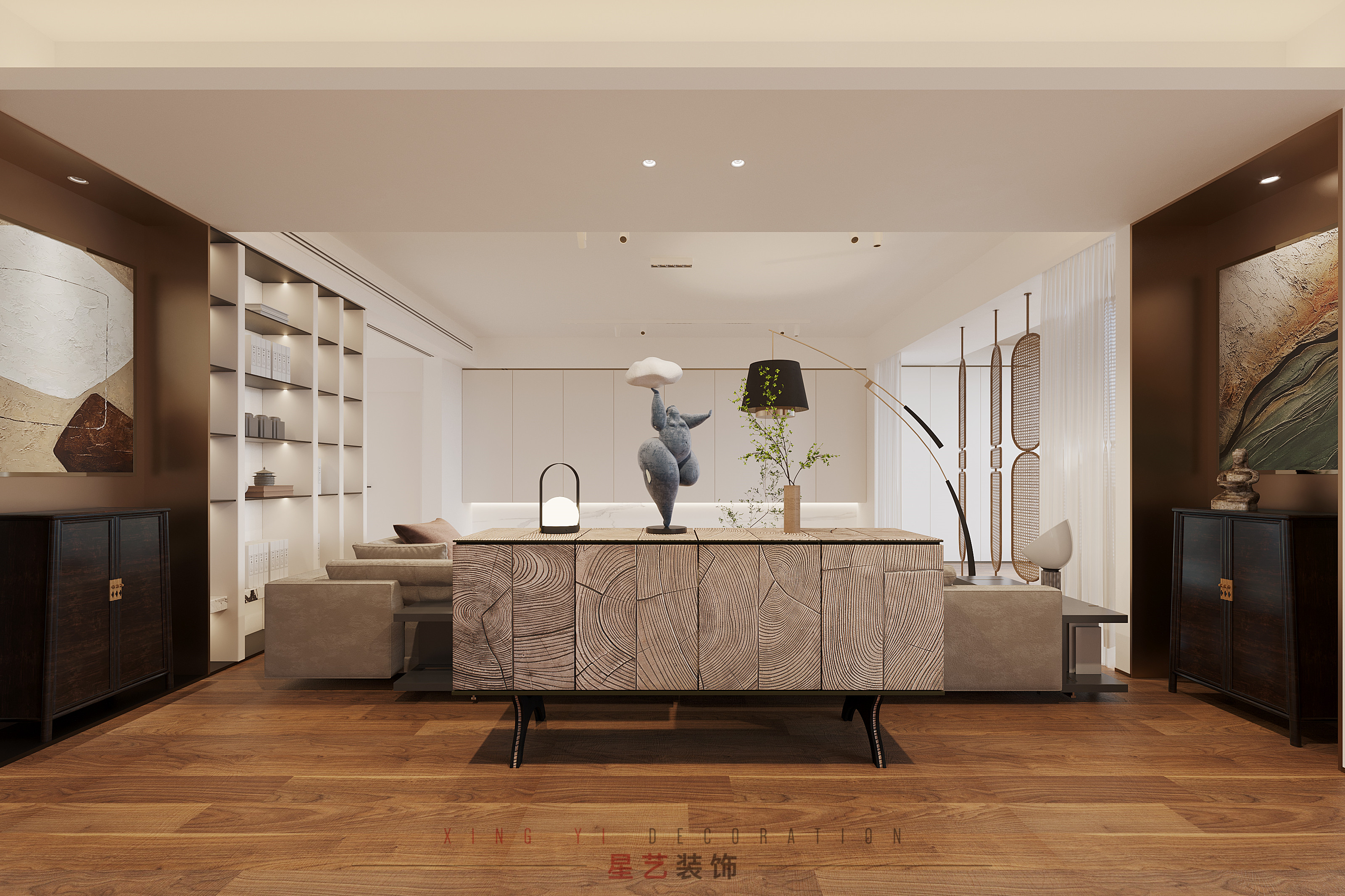 現(xiàn)代簡約+藝術(shù)文化,簡潔明快的設(shè)計風格為主調(diào),加入藝術(shù)文韻,生活的精致感和個性化得以彰顯,這是本期案例的感性經(jīng)驗。