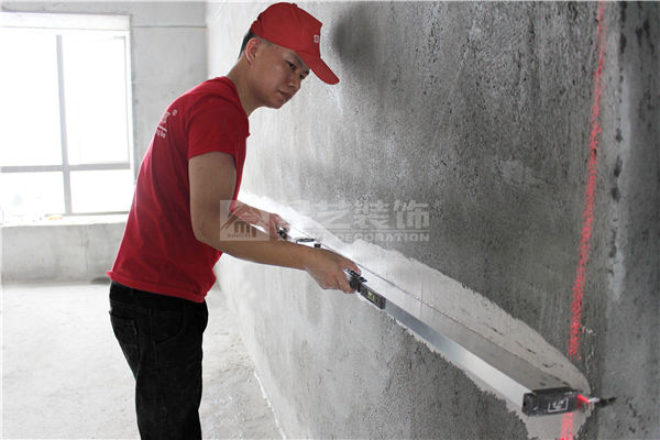 平整垂直,陰角交接線到位。并用靠尺和紅外線校正平整垂直度。