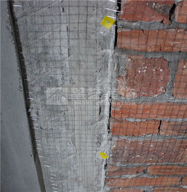 (1)掛網(wǎng):新砌墻掛鋼筋網(wǎng),新舊墻、梁柱交接處掛網(wǎng)不少于200mm搭接。